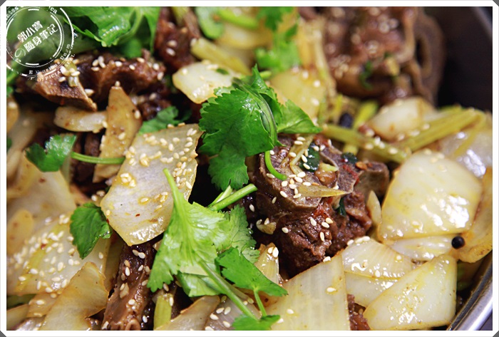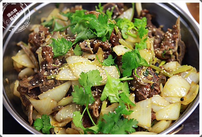 羊蠍子就是用羊脊椎骨還有一些香料下去烹調出來的,看起來就像是一隻隻蠍子一樣,吃起來的肉質挺嫩口的,味道也醬爆的相當的透,中間還有骨隨可以吸食。