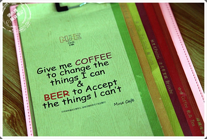 | 我不知道這菜單是正式版本還是試營運的版本,看起來很簡單卻很有設計感,裡面的餐點老實說真的都很平價,以MUSE的裝潢跟餐點內容,我只能說快趁著試營運一定要快衝,不然正式營運後調漲價錢可能性很高XD |