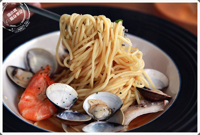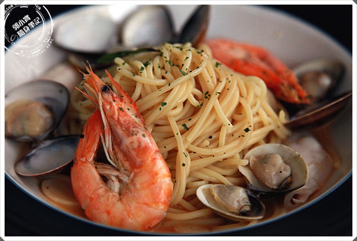| 能被我稱讚的義大利麵真的不多,正統的義大利麵基本上麵條也是硬的,汁要收的相當的乾,把汁都收到麵條裡面去但麵條卻不軟爛,這就是義大利麵的功夫,但是MUSE為了符合高雄人的口感,一樣把汁收的相當的乾,但是麵條卻是軟嫩有咬勁的口感,重點是湯汁收乾後的香氣全部都完整的收在麵條裡面,咀嚼中真的可以咀嚼除了有麵甜香以外,還有濃郁的海鮮味跟淡淡的白酒香氣,吃完一份後相當的滿足!! |