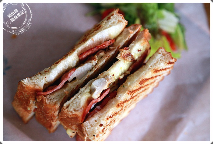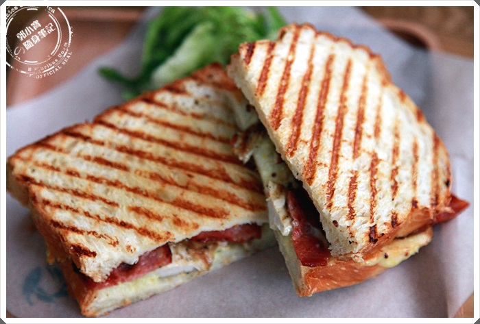 | 再來我也相當推薦的帕里尼,我對MUSE真的還滿佩服的,他們家的餐點說真的看起來跟吃起來真的都很出乎我的意料之外,吐司的部分是用比一般帕里尼還厚的吐司片,條紋燒得相當的漂亮,厚度確實也相當的構,搭配一旁的少許新鮮蔬菜沙拉看起來就相當具有飽足感,但是整體來說我覺得不是很正統的帕里尼,但是一口咬下去我真的必須講,管他是不是正統的帕里尼,因為真的妖獸好吃的啊!!! |