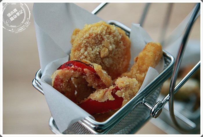 | 另一個炸物還鐵特別的,裡面包裹的都是蔬菜類的炸物,他們家的炸物吃起來一點都不會有油耗味,油也蒞的很乾,吃起來相當的爽口。 |