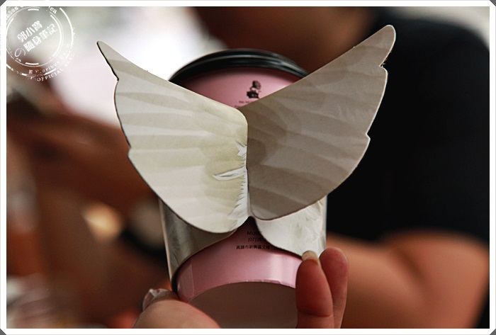 MUSE專屬的外帶咖啡杯超好看,是天使杯的造型,當天女性友人看到一整個愛不釋手,杯子本身就是討喜的粉紅色了,加上天使翅膀造型的隔熱套真的超有創意。