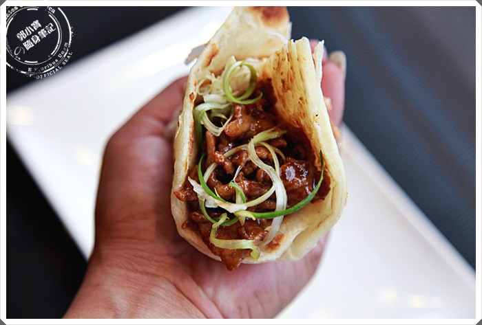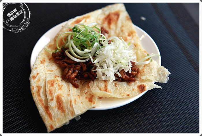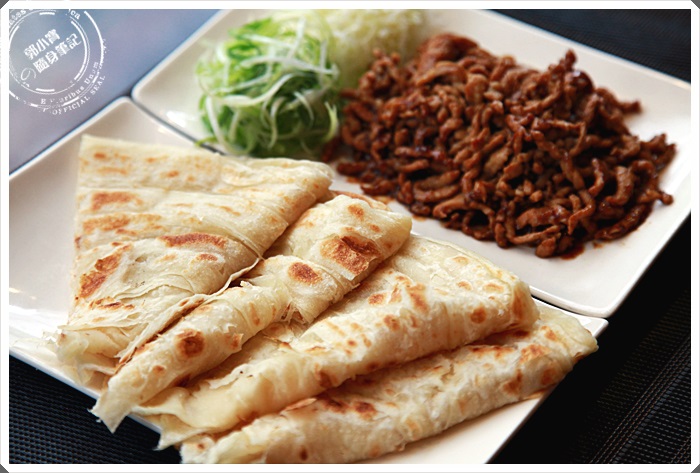 | 斤餅夾了滿滿的京醬豬肉絲,在配上細長蔥花,滿滿的內餡咬上一大口,滋味層次相當的豐富,可以感受到斤餅的咬勁與蔥花的香氣,麵甜香跟蔥花還有京醬的風味相當的搭,重點是斤餅跟豬肉絲的口感變化也很棒,咀嚼再三都相當的有趣味。 |