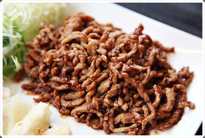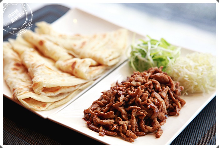 | 豬肉絲給的份量滿滿一大盤相當的足,所以才推薦這一份CP值相當高的豬肉絲斤餅,京醬的味道相當的濃郁但不死鹹,單吃了一口味道相當的不錯,豬肉的咬勁表現得也很好。 |