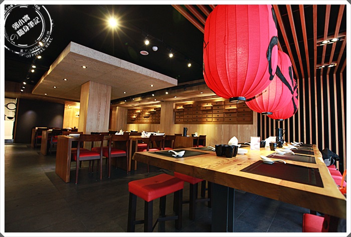 | 室內第一眼給人的感覺真的不太像是牛肉麵店,倒反而更像日本料理店,整間店內大部分都是原木裝潢,整體偏向暖色系的風格,大紅色的椅子讓人感覺有一絲絲的中國風,店內第一桌長桌還有三個大紅燈籠高高掛,進入店內的第一個氛圍就很棒,用餐的環境比起傳統的牛肉麵店來的好太多了,沉穩內斂的空間頗為少見,相當適合帶外國朋友或是洽公午餐的好選擇,每次帶國外朋友想吃台灣經典的牛肉麵時,帶到一般的牛肉麵店吃得汗流浹背對我們台灣本地人來說或許要這樣才過癮,但是對外國朋友倒不是這麼回事,再來就是品川蘭給了牛肉麵也可以擁有高品質的用餐空間這一點我也相當的佩服。 |