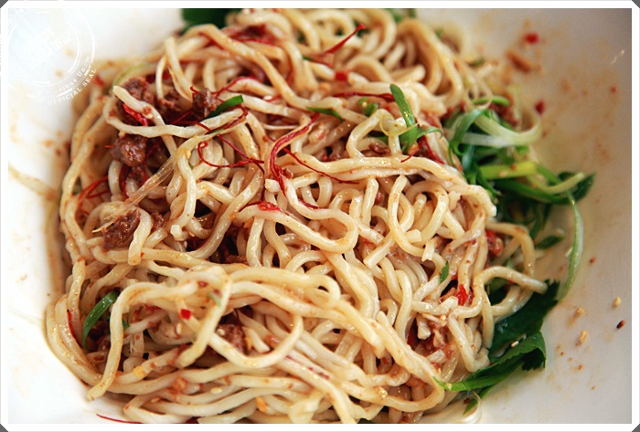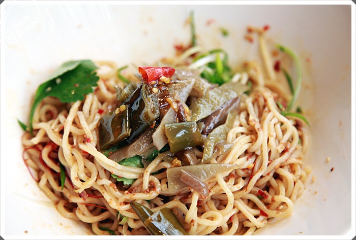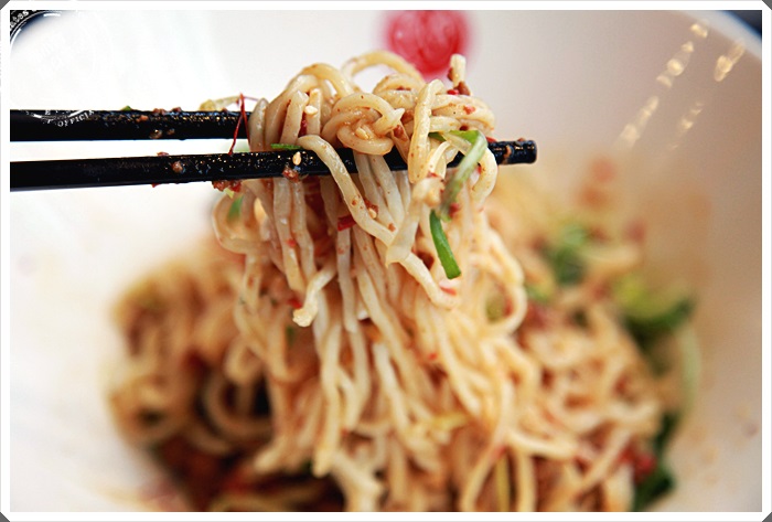 | 麵裡面除有本身店家特製的東北醬料以外,我還加了很多爆炒青龍跟酸菜心,攪拌過後真的口水一直流下來,本身東北秘醬香氣就滿重了,加上兩款菜心下去後味道就更濃郁了。 |