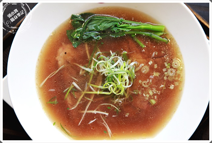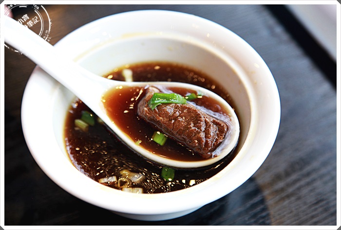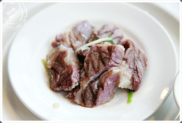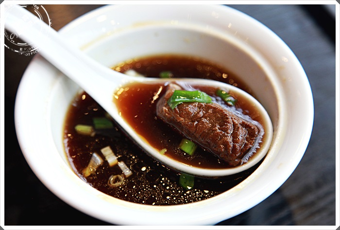 | 第一眼看到這牛肉麵的時候頗為驚訝,原來台灣的牛肉麵也可以像是義大利料理一樣的精緻,這大概是我目前看過牛肉麵最精緻也最漂亮的呈盤了,花160大洋還可以享受到這樣西餐的規格真的滿划算的,不得不佩服品川蘭對牛肉麵精緻化的用心,霎那間我真的還以為來到義大利菜系的餐廳呢! |