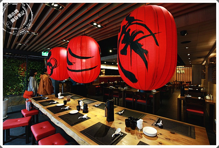 | 整間大部分以黑紅色基調來表現出高貴低調的氛圍,門口處的石牆與綠草牆搭配相當的融合,一旁的石椅可以讓等待的客人稍做休息,用餐時間的人潮很多,建議可以避開重點用餐時間.