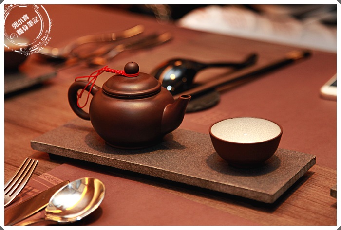 瞬間每個人的面前都來了一壺功夫茶,所謂功夫茶就是選用日月潭紅玉紅茶18號,而且只給客人第一泡茶湯,所以接下來當然就不用說了,這樣一定是不能續壺的阿!!!