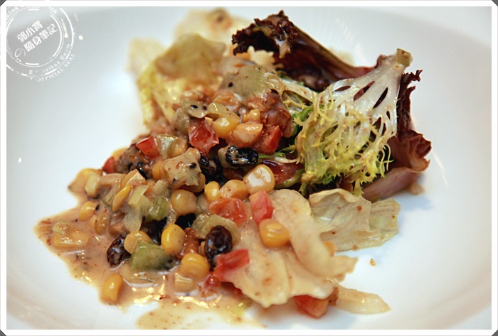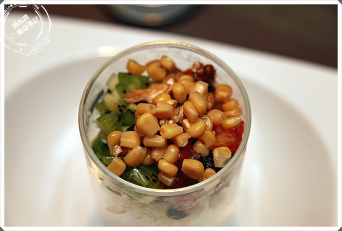 | 倒出來的莎拉確實散發著淡雅的香氣,舀上一口吃下後覺得這醬汁確實相當的不賴,酸酸甜甜的相當的爽口,加上玉米粒的滾動口感還有水果的多汁,整體上吃起來非常的開胃,醬汁確實相當的利害,我喜歡它們家的沙拉醬汁。 |