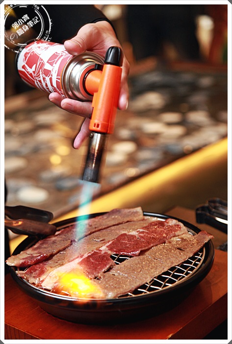 | 當店長在炙燒的時候,我還有特別仔細小心的看了一下他的瓦斯罐,很多人都不知道其實炙燒的瓦斯罐也有分食用瓦斯跟一般瓦斯,很多不肖業者幾乎都一般瓦斯拿起來就噴了,不過炙牛食創堂用的是單價滿高的食用瓦斯,這樣吃起來安心多了。 |