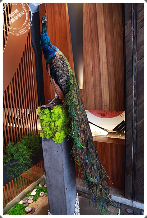 入口一旁的孔雀佇立在石柱上,孔雀羽毛保養的相當的好,小寶記得我們家以前也有一隻,但是尾巴幾乎都被老鼠咬得亂七八糟了,甚至整個尾巴都不見了!!