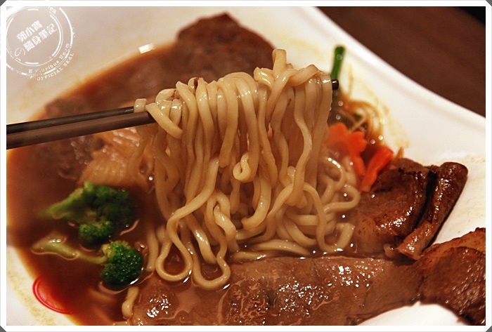 | 炙燒牛肉麵的麵條吃起來的口感相當的有嚼勁,屬於是Q彈的麵條,有點像是日本拉麵裡面的太麵,我個人是相當喜歡這類型的麵條的,吃起來會很彈牙的那種,麵條吸附了滿滿的湯汁,份量也頗多的,只是記得上來要趕快趁熱吃,放久了以後會變得比較軟爛,日本的太麵基本上放久一點還是會保持一樣的口感。 |