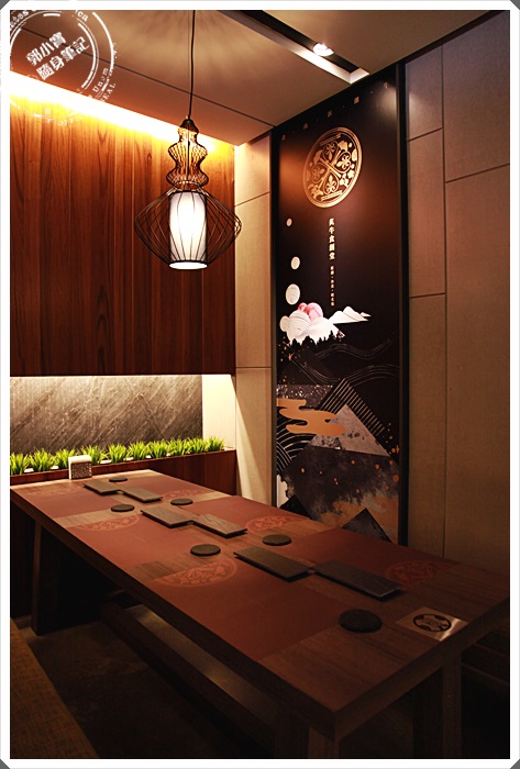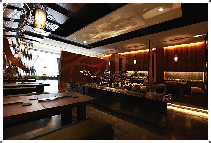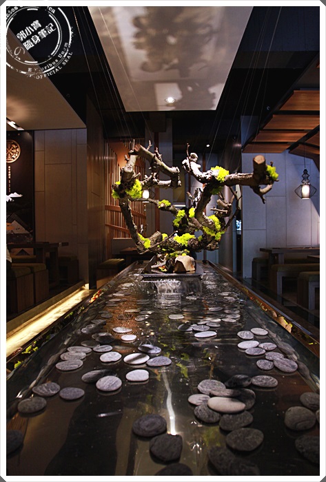 | 醉瞬間可以吸引我眼球的就是前面中央流水池,中間置放了精刁過的樹枝,老闆願意把這價值不斐的造景物提供大家欣賞可真難得,配合岩石與流水,展現出濃濃的中國禪風,搭配著室內半日式禪風跟中式佈景,加上暖色系的燈光,整體用餐的空間是相當的舒適的,燈光照射在水池上反映倒影在白色天花板上就像是一幅畫布,流動的筆墨山水畫正在繪畫著。 |
