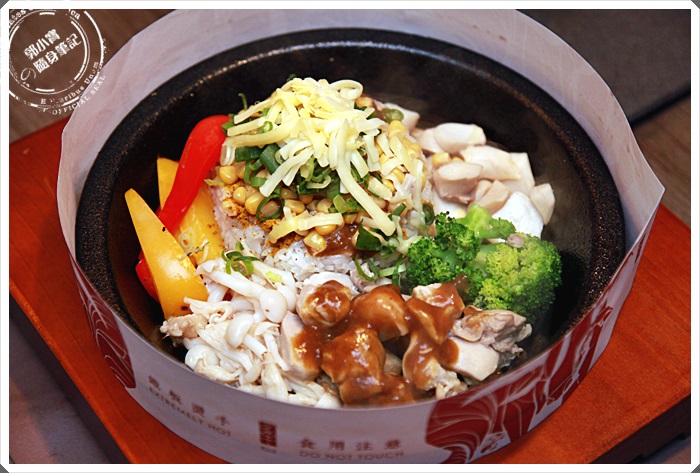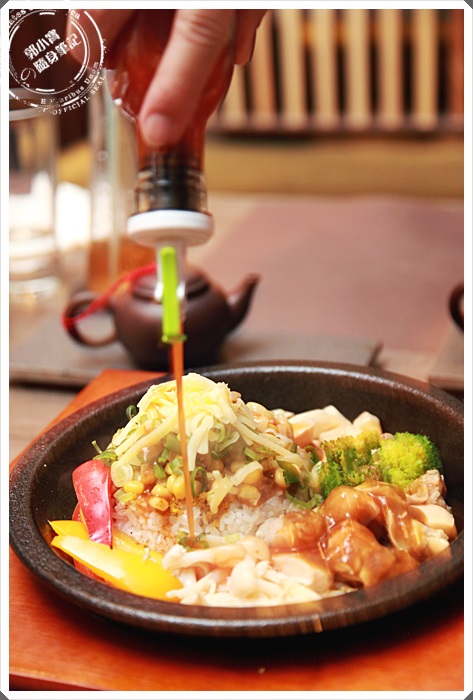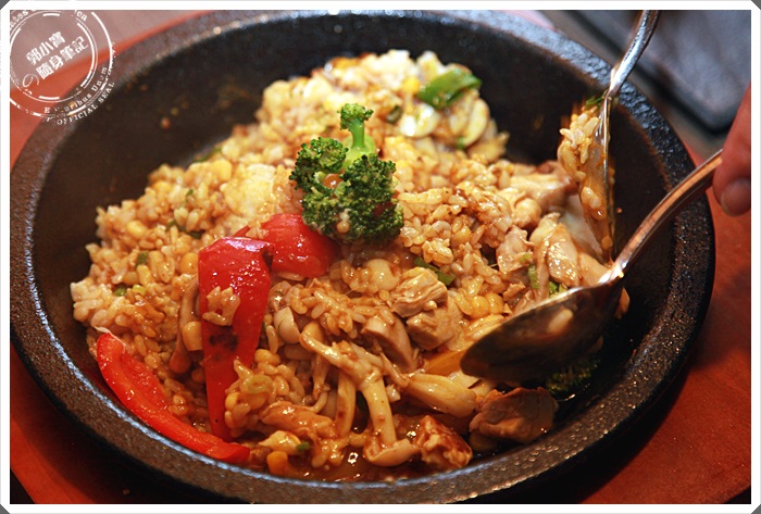 | 淋上店家特製的辣椒醬汁後再進行攪拌,老實說在攪拌的時候我就已經口水流滿地了,炙燒食創堂的香氣也太濃郁了吧,尤其那看起來超不起眼的咖哩醬,跟石鍋接觸攪拌後的香氣怎會濃成這樣,簡直是太犯規了! |