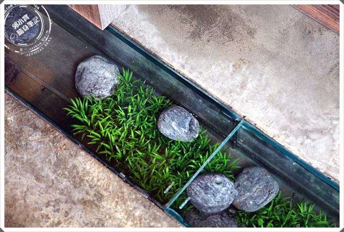 | 即使在你可能不會注意的地上角落一旁,炙牛牛創堂一樣有很多小驚喜等你來發掘,沿著桌子旁的分隔小河道,下次再來炙牛創食堂搞不好就可以看到裡面有魚也說不定。 |