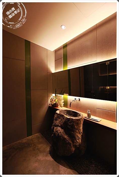 想說先來個廁所先清空一下,等等才可以吃大餐,一進入到廁所才發現,有沒有那麼愛中國風阿,那是一個真石頭硬打成假山洗手台的概念嗎??