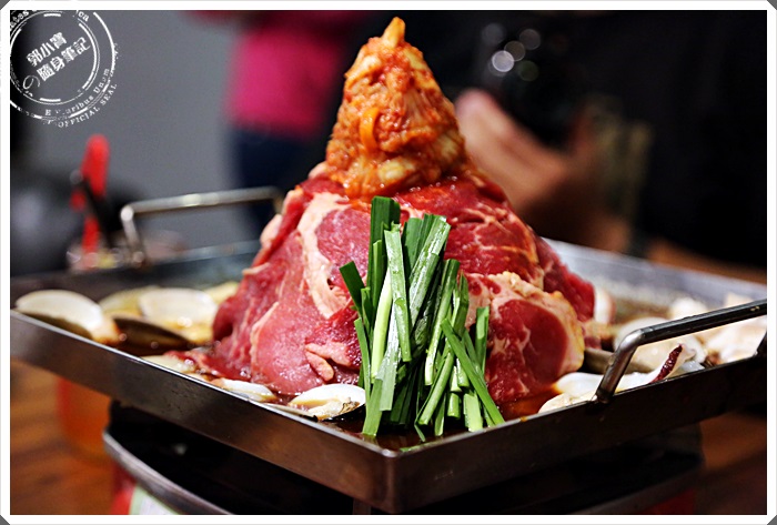 等沒多久就等到我們的肉山了,我們選擇了兩種口味的平盆鍋合成一鍋,所以看起來就更壯觀了XD