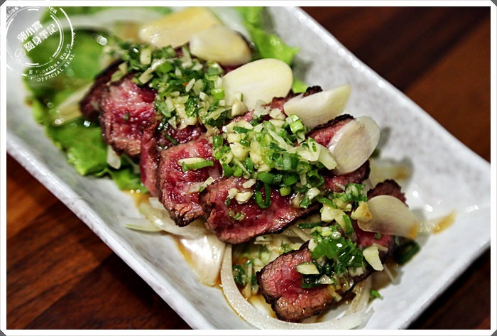 直接全生的牛小排先炙燒過後再切片,入口可以咬到外皮的焦香脆,咀嚼中又有牛肉鮮甜的血水,推薦!!! |