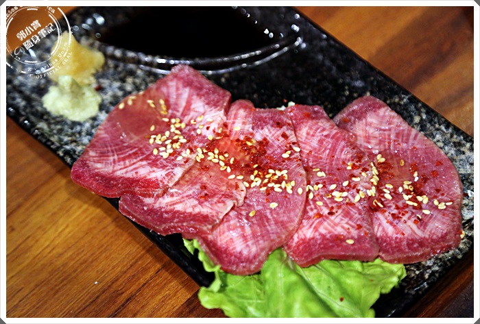 上來的時候大家就知道這一整盤幾乎都是我的了,因為我是道地的牛舌魔人,愛吃牛舌幾乎到了瘋狂的地步,但是我到當天為止倒還沒試過生牛舌,但是我對生牛舌當然也沒啥好懼怕的,當下試了一片,其實跟熟得沒有太大的不同,反而生的牛舌其實沒有太多的味道,口感也跟一般燒肉的口感差沒多久,後來我還夾了一片去平盆鍋大概涮了幾下,吃起來滋味也相當的不錯,不敢吃生牛舌的朋友倒是可以涮一下。 |