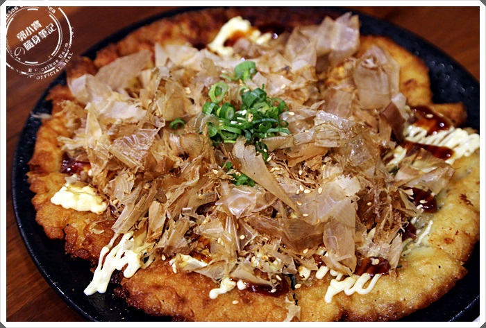 看起來很具分量的海鮮煎餅,在台北賣這個價位算是相當的親民,吃起來偏濕潤比較有日本的口感,台灣人似乎比較喜歡焦脆的海鮮煎餅,但是我個人算是比較喜歡濕潤一點的! |