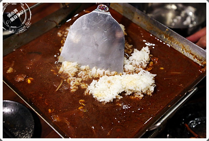 | 不得不說這鍋巴飯吃起來真的相當的特別,米飯吸飽了滿滿的醬汁風味,入口甜甜帶點微辣香氣,咀嚼中又散發著蛋香,整體的味道香氣層次相當的豐富,突然間覺得那麼小的鏟子真的是不夠過癮,但是又或許就是要那麼小的鏟子小口吃才會那麼美味吧!! |
