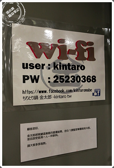 | 因為店面屬於小巷弄內,所以收訊並不是很好,但是金太郎平盆鍋還是很貼心的提供的網路服務!! |