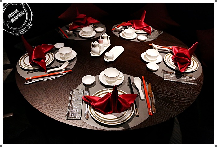| 點完菜單後,就準備享受我們晚上的美食大餐了,餐具頗為複雜,搞得好像要吃西餐一樣,但是這些餐具到底如何使用我也不知道,外場服務人員也沒有跟我們說,因為筷子就給我兩雙了,到底甚麼時候要用哪雙筷子,不過我個人是一雙筷子用到底的XD |