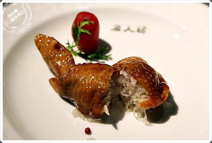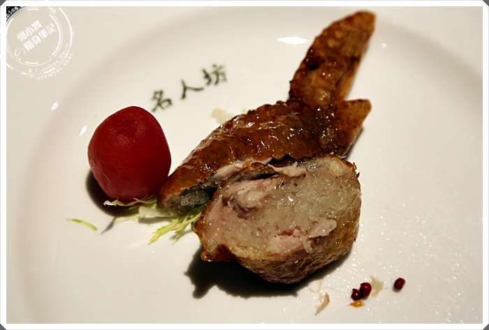| 名人坊的招牌菜色之一,將雞翅去骨後塞入滿滿的燕窩,入口最讓我驚豔的卻是他的外皮,可以感覺到它的脆度十足,雞肉跟燕窩本身沒有太大的味道,卻一口就能讓人滿足。 |