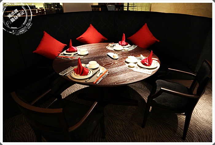 | 服務人員帶我們到我們訂的位子,今天我們總共是四個人,老實說以這裝潢跟燈光的感覺真的一點都不像是吃粵菜,整體的風格跟香港的名人坊倒是有一點像。 |