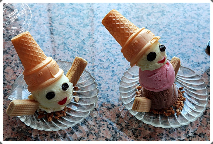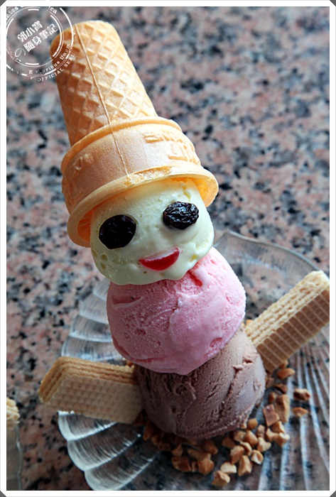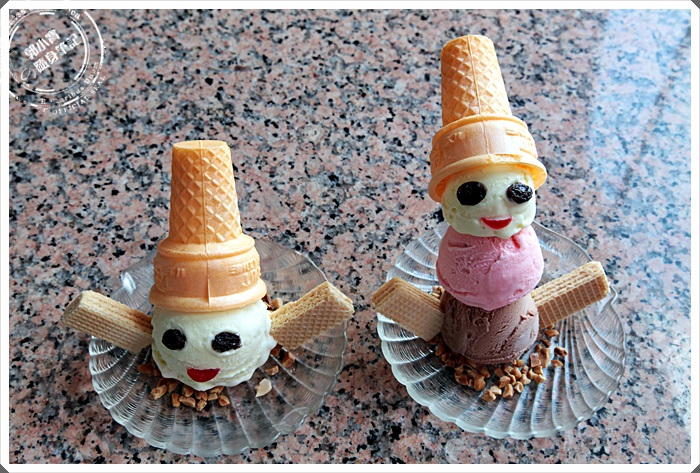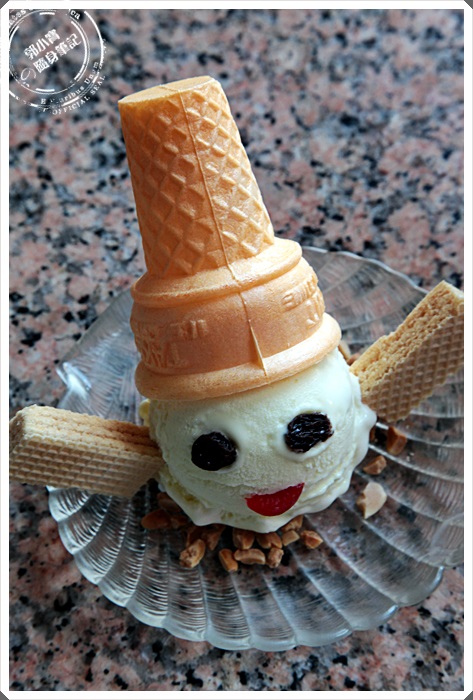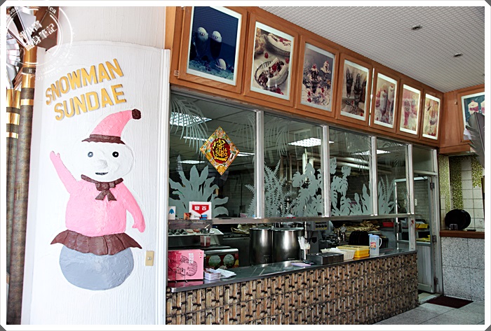 不得不說這雪人聖代在40年前真的是風潮一時,幾乎每個小孩子都會被它嚇哭,現在看起來是真的有點驚悚獵奇,但是在那個年代幾乎是可愛的代言人,每個小孩子來這邊都會指定要雪人聖代,因為是純天然的關係,所以冰淇淋融的很快,一下子帽子跟眼睛就會開始脫落的不成人形,到最後每個小孩子都會傷心的哭惹~~~
