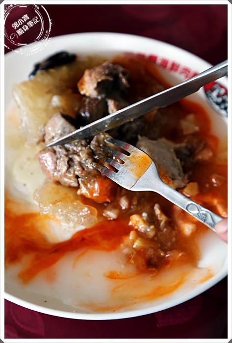 | 因為太大了,所以店家都是附上刀叉伺候,加上外皮較酥脆,所以必須有刀子處理比較好進食。 |