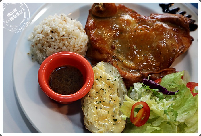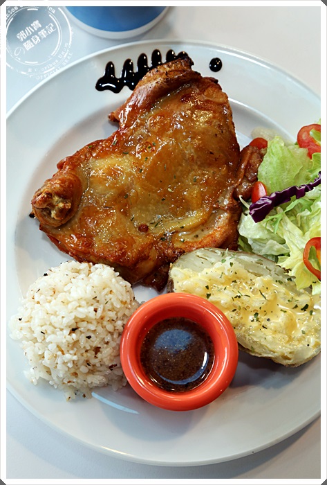 momo必點的雞腿排,單價不到200的雞腿排在早午餐幾乎是超大心的價錢,除了有主食以外還有香鬆飯跟生菜,外加半顆馬鈴薯,一整個就是超豐富的,同樣也有一杯暢飲的飲料杯。 雞腿吃起來超超超超超嫩的啊!!!!! 我超愛它們家的雞腿排的,吃起來雞皮帶點油可是又有點脆,相當合我的胃口,帶點迷迭香的氣味,搭配醬汁吃起來味道又提升了另一個層次。 醬汁一開始以為是一般的醬料,沾了一口後感覺他真的很特別,所以才詢問了裡面的人員,得到了他是義大利巴薩米克葡萄醋醬的答案,義巴薩米克葡萄醋在義式料理本身的名氣就不小了,dala meet又將他調整過後我更喜歡,相當適合用在肉類的料理上。