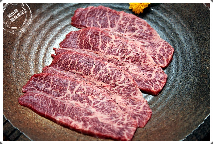 | 板腱本身瘦肉的部分比較多,肉的咀嚼感比重也比較重,但是約客和牛頂級燒肉的板腱確有大油花,所以吃起來帶點油口的的咀嚼感,不喜歡吃太油的朋友推薦點這一塊肉,吃多也不用怕太油。 |