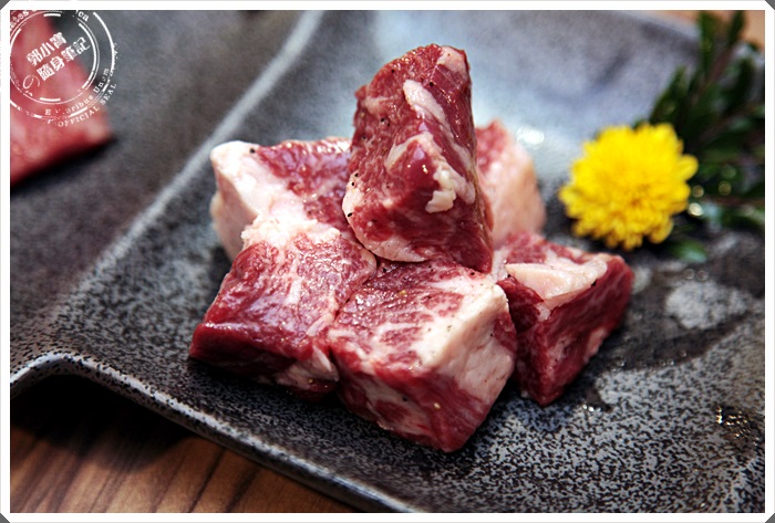 | 和牛牛小排的花紋也是漂亮到一個超恐怖的地步,店長幫我們燒烤時簡直讓我們口水流滿地,立馬搶先第一的夾了一塊放入嘴中,那豐沛的油脂瞬間在口中散發出來,彷彿不用咀嚼就可以融化在我的嘴裡了,真的是太幸福的味道了。 |