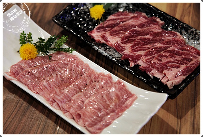 | 板腱一直都不是我喜歡的部位,但是在約客和牛頂級燒肉吃完後幾乎改觀了,原來好吃的板腱牛肉可以那麼的美味,以前對板腱牛肉的感覺就是乾柴,幾乎沒有甚麼油脂,所以送上來的時候我就覺得這板腱油花也太厲害了吧! |