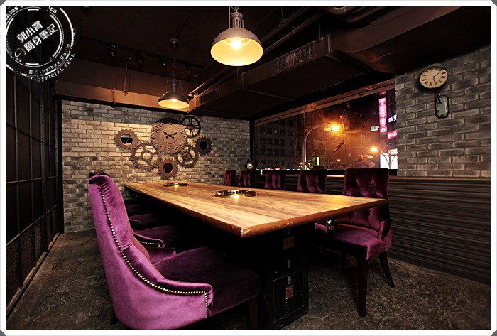| 最特別的就是約客頂級和牛燒肉還有提供包廂,目前包廂有三間,需要最低額度消費才可以進入包廂,包廂的裝潢也都偏向簡約工業風,大紫色的沙發椅坐起來相當的舒服,包廂大概都設計可以容納10人左右空間包廂,相當適合聚會。 |
