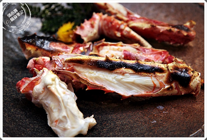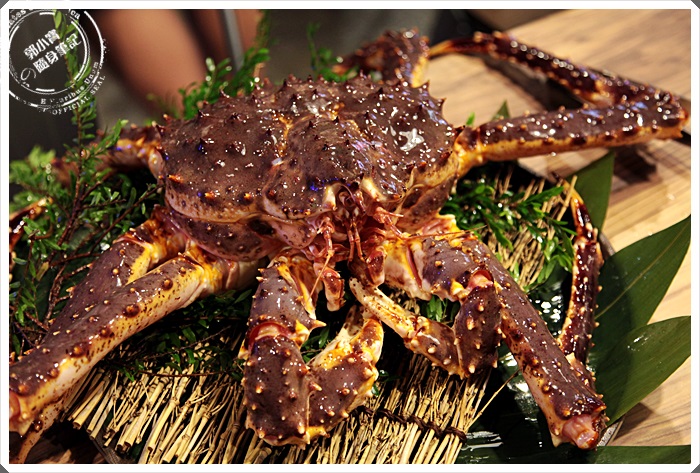| 店內也有提供活跳跳的海鮮,甚至有大家超愛的帝王蟹,選好帝王蟹後就會送到廚房內讓日本師傅處理,帝王蟹腳當然就是以燒烤為主了阿,活跳跳的帝王蟹腳果然一吃就是銷魂,那蟹管肉鮮美無比,蟹管肉超多的阿,一下子就讓大家搶食成一團混亂,當晚10多人都吃的超開心的。 |