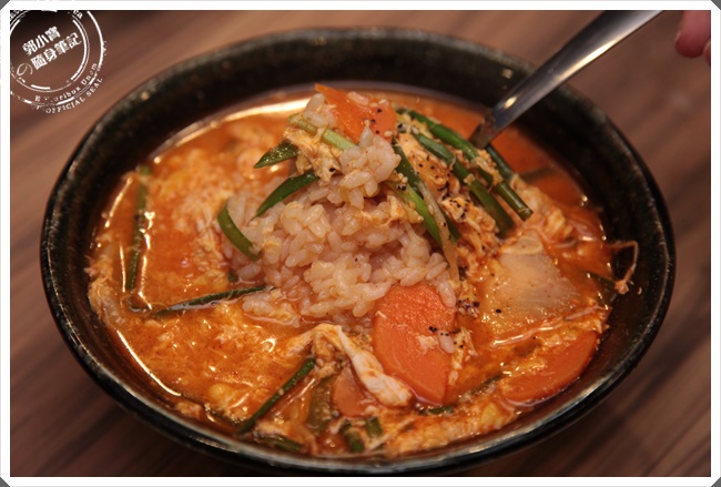 | 辣味噌泡飯的口味相當重,辣度真的頗辣,不能吃辣的朋友千萬別嘗試,但是對我們這種喜歡吃辣的人說相當的過癮,不只吃光光還把湯汁喝個碗底朝天。 |