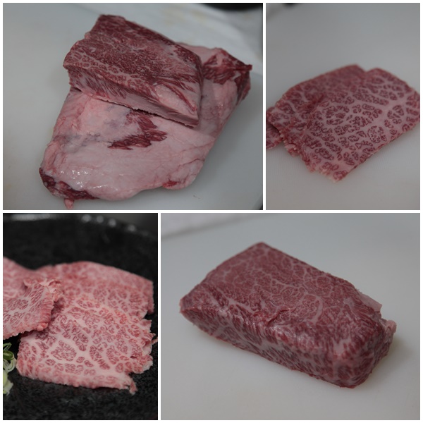 業者表示為了品質跟確保和牛的品質,店內的大廚也是日本邀請過來處理和牛的專家,其實我還滿驚訝的,切牛肉也會有專家,廚房內日本師傅在日本相當具有知名度,當場拿了牛肉讓我們看了一下,其實我光看這些牛肉的油花就融化了,怎麼每塊都那麼的漂亮,日本師傅用生硬的國語說,每塊和牛再出給客人的時候,都需要順著每塊牛肉的紋路去切,還需要把多餘的油脂切除,每一塊進入到客人嘴裡的牛肉都必須是品質最好的牛肉。