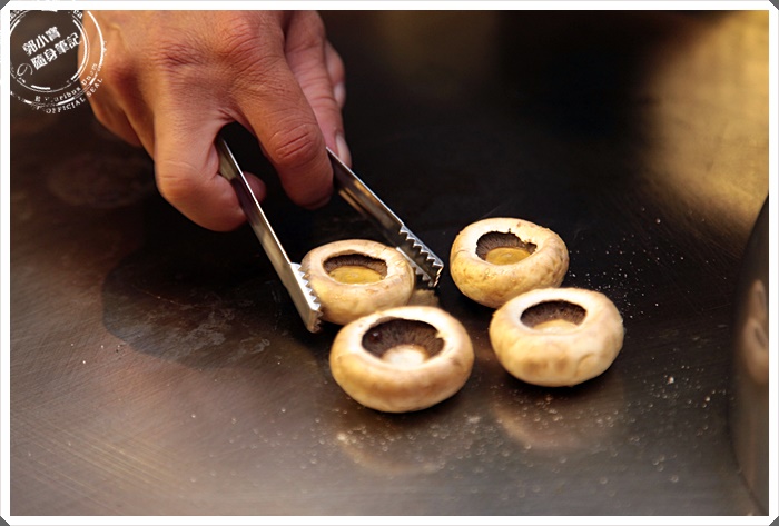 | 這個蘑菇相當的特別,江主廚跟我們說了很多他的由來,但是我因為忙著拍照幾乎都沒有聽得清楚,蘑菇放到鐵板上蒸煎後自然散發出來的湯吃都會集中在蘑菇的空心裡面,就算一個小湯碗一樣。 |