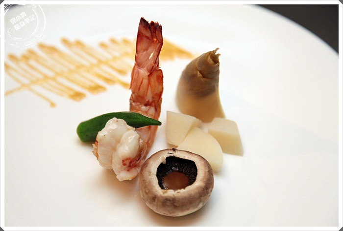 野生大明蝦一樣搭配著蘑菇跟鮮筍,筍子表現沒有特別的驚豔,明蝦蝦肉Q彈美味。 |