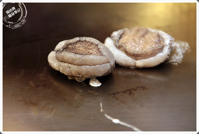 | 一整顆超大顆的活鮑魚在眼前蒸煎後香氣撲鼻,經過烹煮後尺寸依然碩大,一口咬下那揪C又富有彈下的鮑魚真的是大受好評,那自然的新鮮汁溢令人相當的滿足。 |