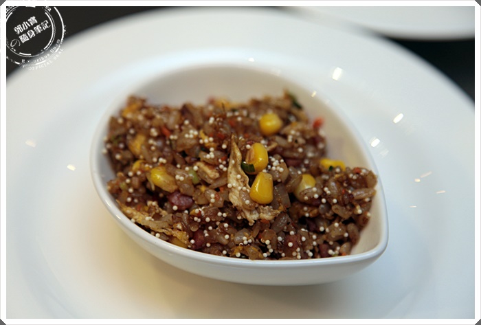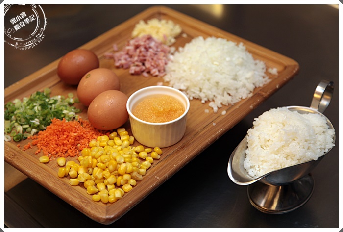 | 吃了一口後真的發現這炒飯也太厲害了,原來炒飯也可以有這樣的呈現方式,裡面有洋蔥的甜味,碎肉的滋味跟玉米顆粒的口感,最重要的是還有一點一點的白色飛魚卵,淡淡的醬油香氣一口吃下滿足又過癮,飛魚卵那逼逼撥撥的口感還有玉米跟飯粒,好像是大大小小不一樣的顆粒在口中翻滾一樣。 |