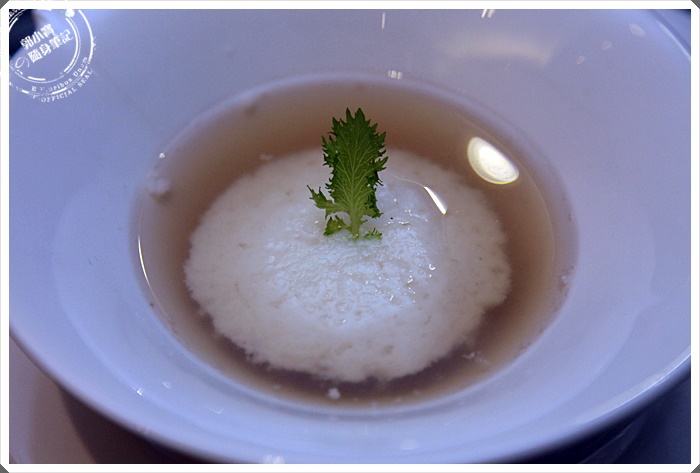 吃完主餐後,江主廚煮了這養身蔬菜湯讓我們清口,把嘴巴裡面的味道去除。 |