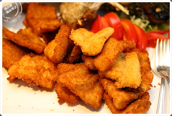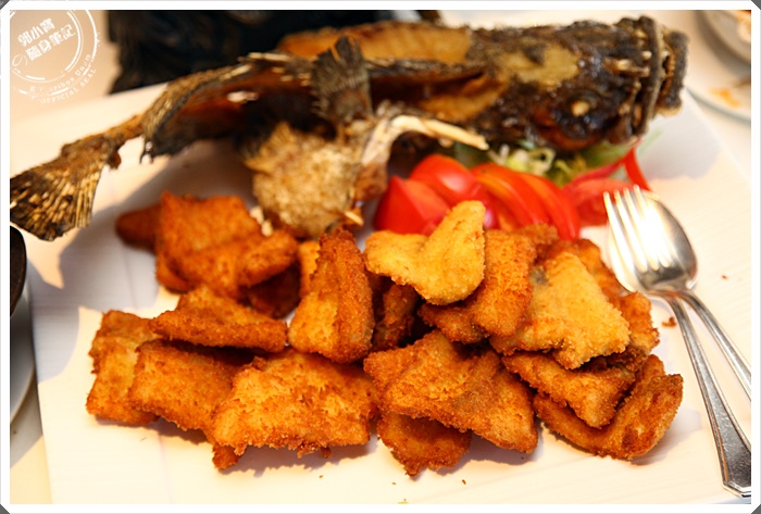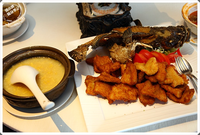 | 先將栗米石斑切塊果粉油炸,單吃炸魚塊倒是不賴,炸粉緊緊的巴在魚肉上,入口不油不膩,裡面的魚肉依然鮮美。 |