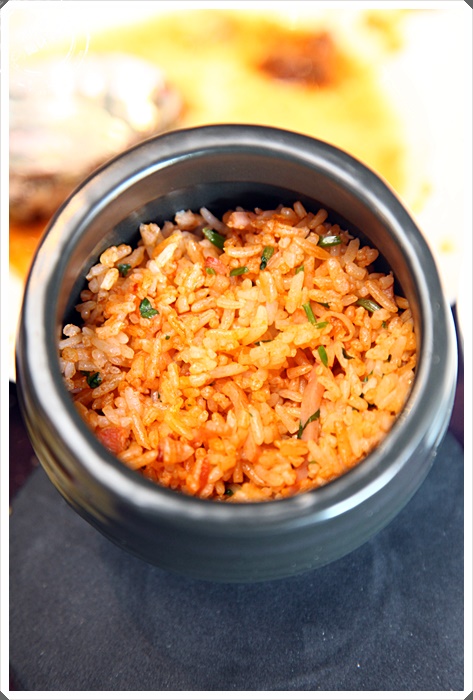 | 加路的招牌菜之一,看看那油亮的烤乳豬皮,一口咬下果然脆香油通通都有,可惜上來的時候也是冷了,不然我還真想試試看他熱騰騰入口的滋味,但是冷掉依然相當美味,搭配鍋裡的臘腸炒飯,難怪可以成為招牌,但是如果這一道可以早一點上會比較好,因為大部分的菜色口味都相當的重,如果早一點上就有飯可以配菜了。 |