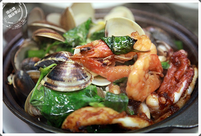 | 我們在菜單看到的是兩個單品,上桌的時候老闆就自動幫我們合在一鍋,我個人是不會介意,但是我覺得客人分別點了兩個不同的三杯鍋品,建議還是分成兩鍋上比較好,三杯的香氣滿濃郁的,花枝口感彈牙脆口。 |