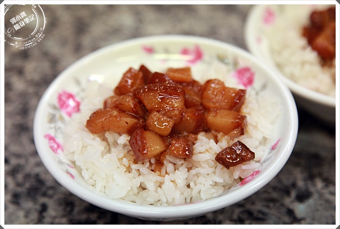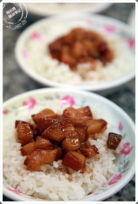 | 他們家的魯肉飯也是大受歡迎的單品之一,我個人說真的也是相當喜歡他們家的魯肉飯,上面的魯肉幾乎全部都是肥肉,肥滋滋的放入口中就感覺要融化一樣,夾著米飯一起入口超搭口的,可惜米飯硬了一點,不是我最喜歡的口感,不然簡直快達到滿分的階段了,這魯肉飯上面的主角真的還滿厲害的。 |