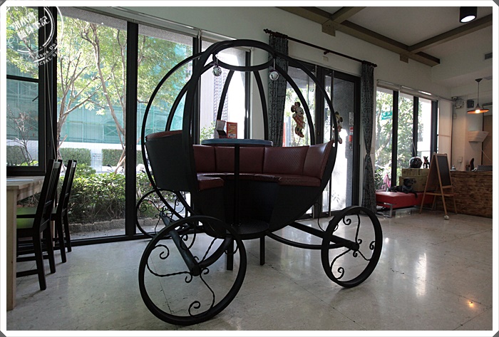 | 店內最熱門的就是這一輛南瓜馬車的座位區了,好像很多女生都會預定這個位子,所以想來南瓜馬車用餐的女性朋友,最好可以先打電話預約一下,當天我們到的時候人潮還滿空的,大概就我們跟另外一組客人。 |